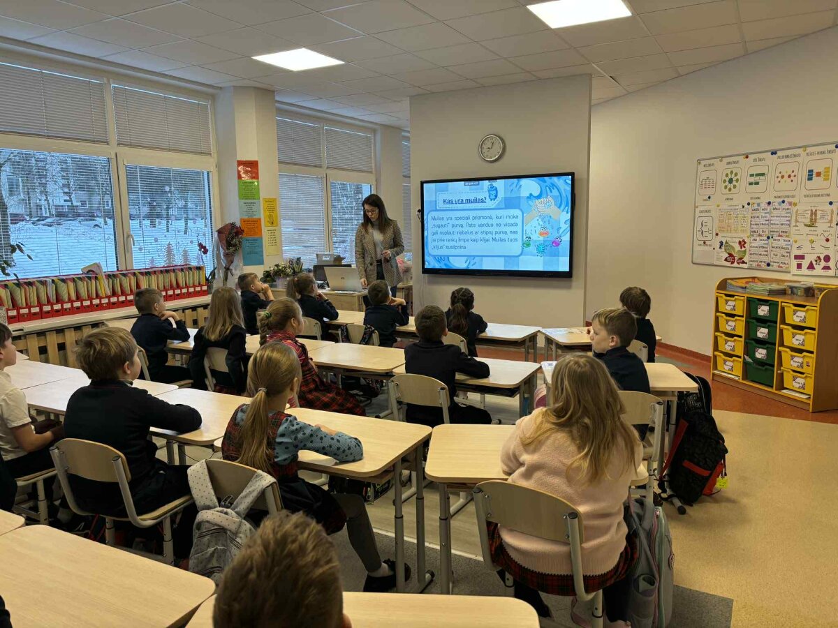 Gamtos mokslų pamoka pirmokams prasidėjo nuo įdomaus fakto – muilas gali būti skirtingų būsenų (kietas, skystas, tirpstantis). Tai paskatino mokinius prisiminti jau aptartas ir išmoktas vandens būsenas, aptarti, kokiomis sąlygomiss medžiagos gali kisti.