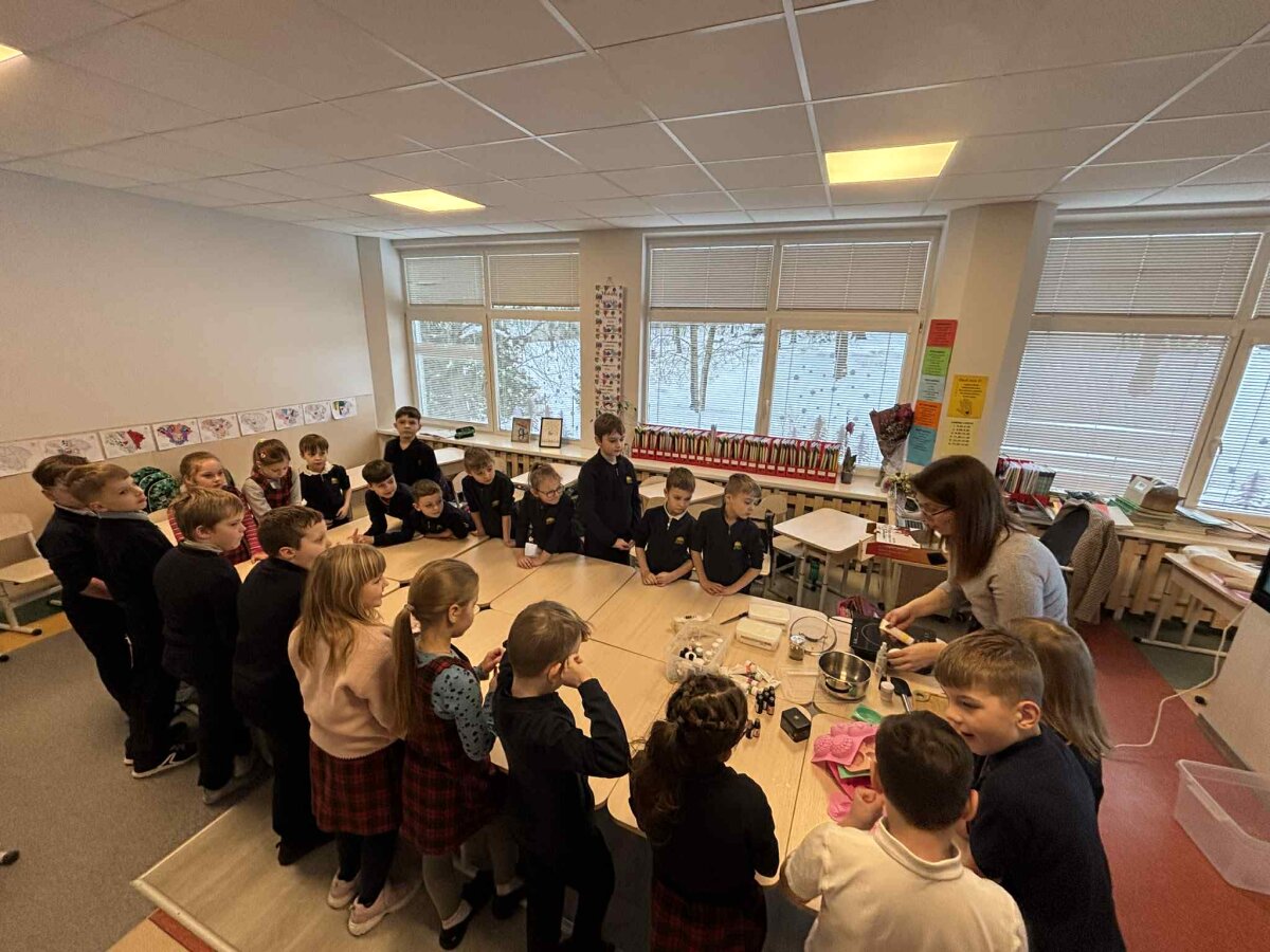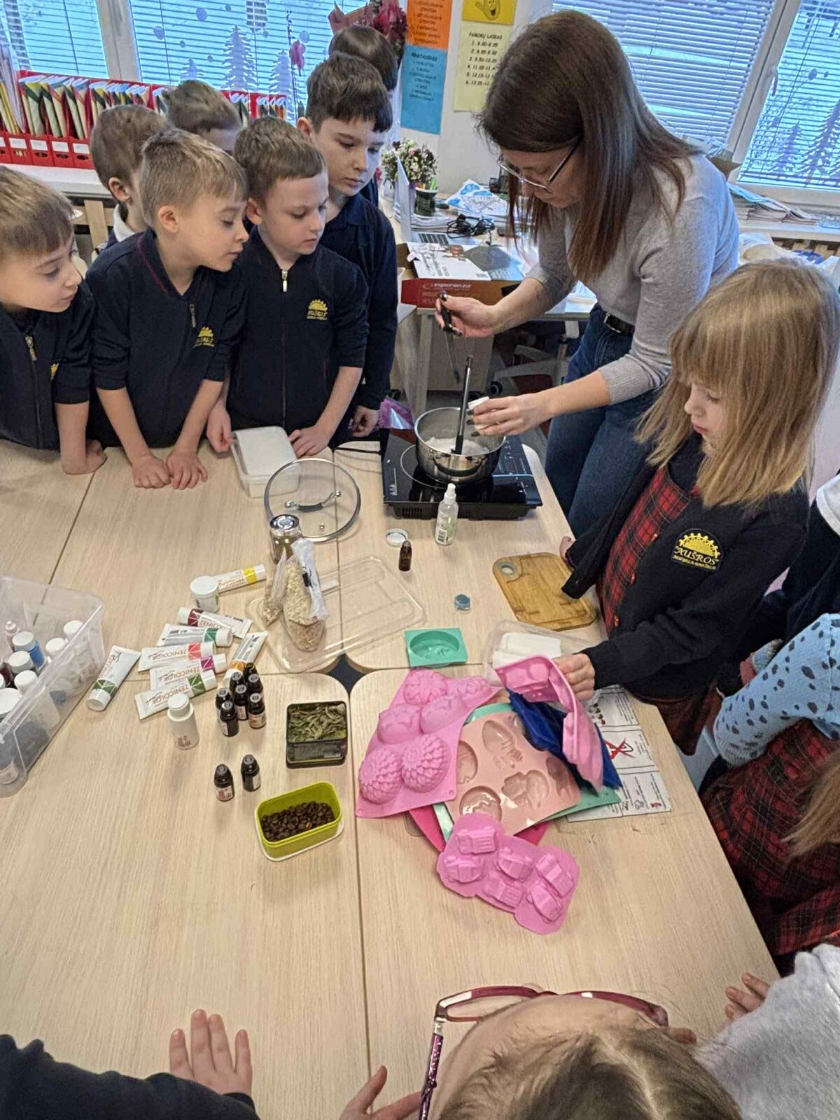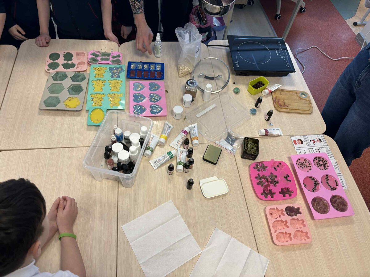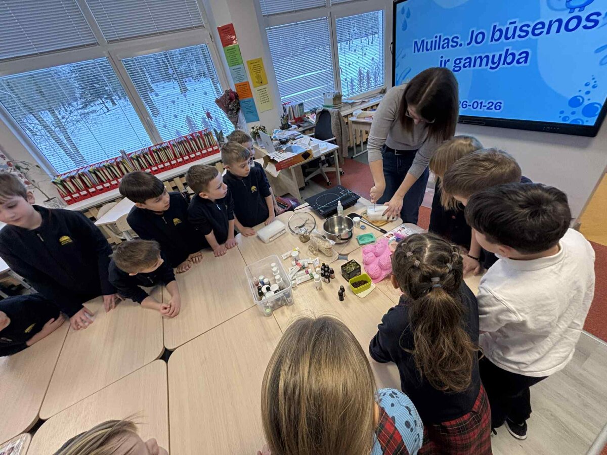 Didžiausio susidomėjimo sulaukė praktinė veikla – muilo gamyba. Mokiniai tyrinėjo muilo gamybai skirtas priemones visais pojūčiais: lietė, uostė, stebėjo, o kai kurie net paragavo avižų, kurios buvo skirtos puošybai. Balsuodami vaikai sprendė, kokius kvapus, spalvas ir priedus dėjome į muilo bazę, stebėjo gamybos procesą. Tokios veiklos skatina vaikus mokytis aktyviai, smalsiai ir patiriant džiaugsmą.