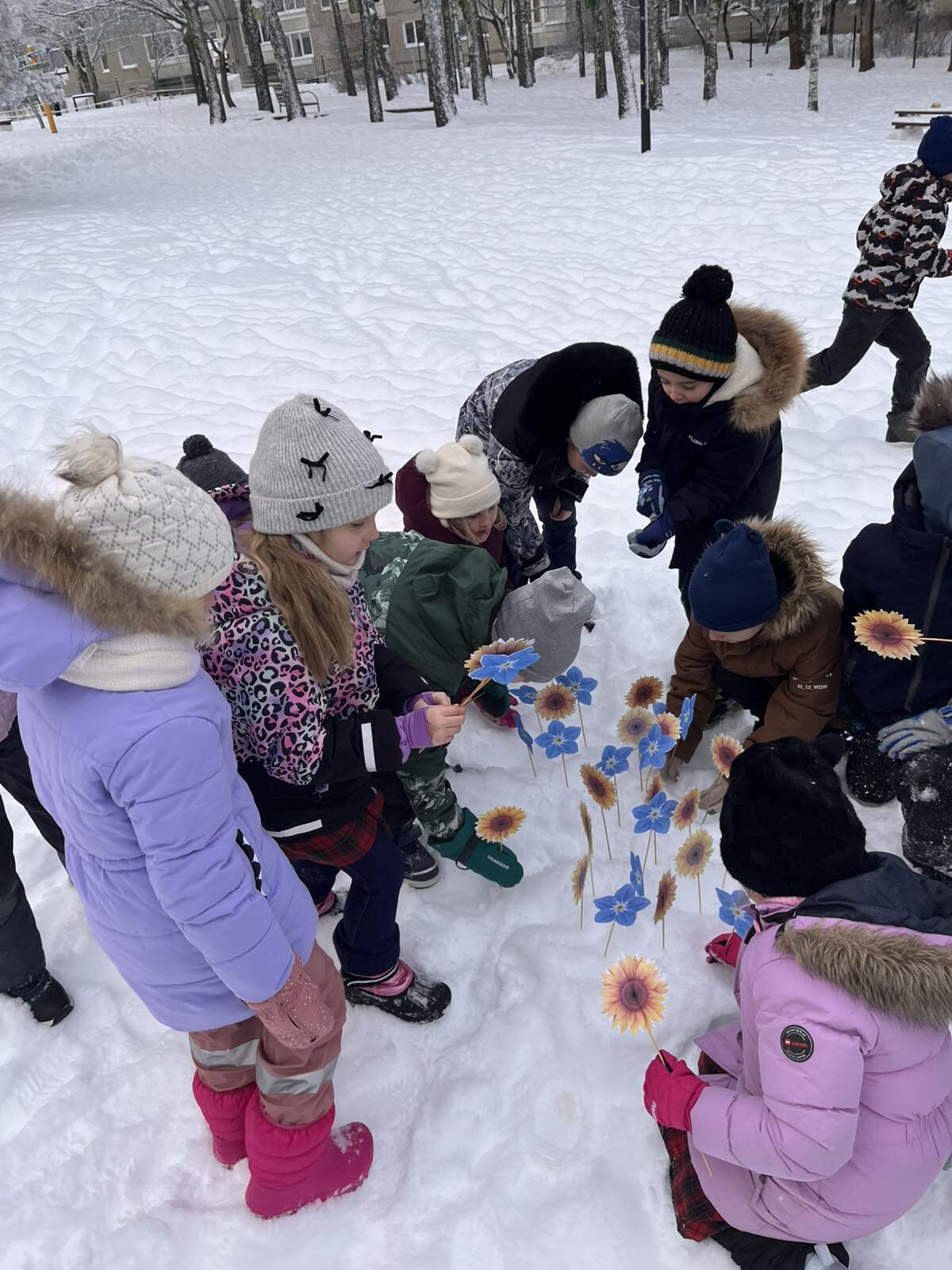 Siekdami įprasminti šią dieną, mūsų įstaigos languose sužibo atminties žvakutės, o vaikai sniege „pasodino“ ypatingą pievą. Sniege pražydo: