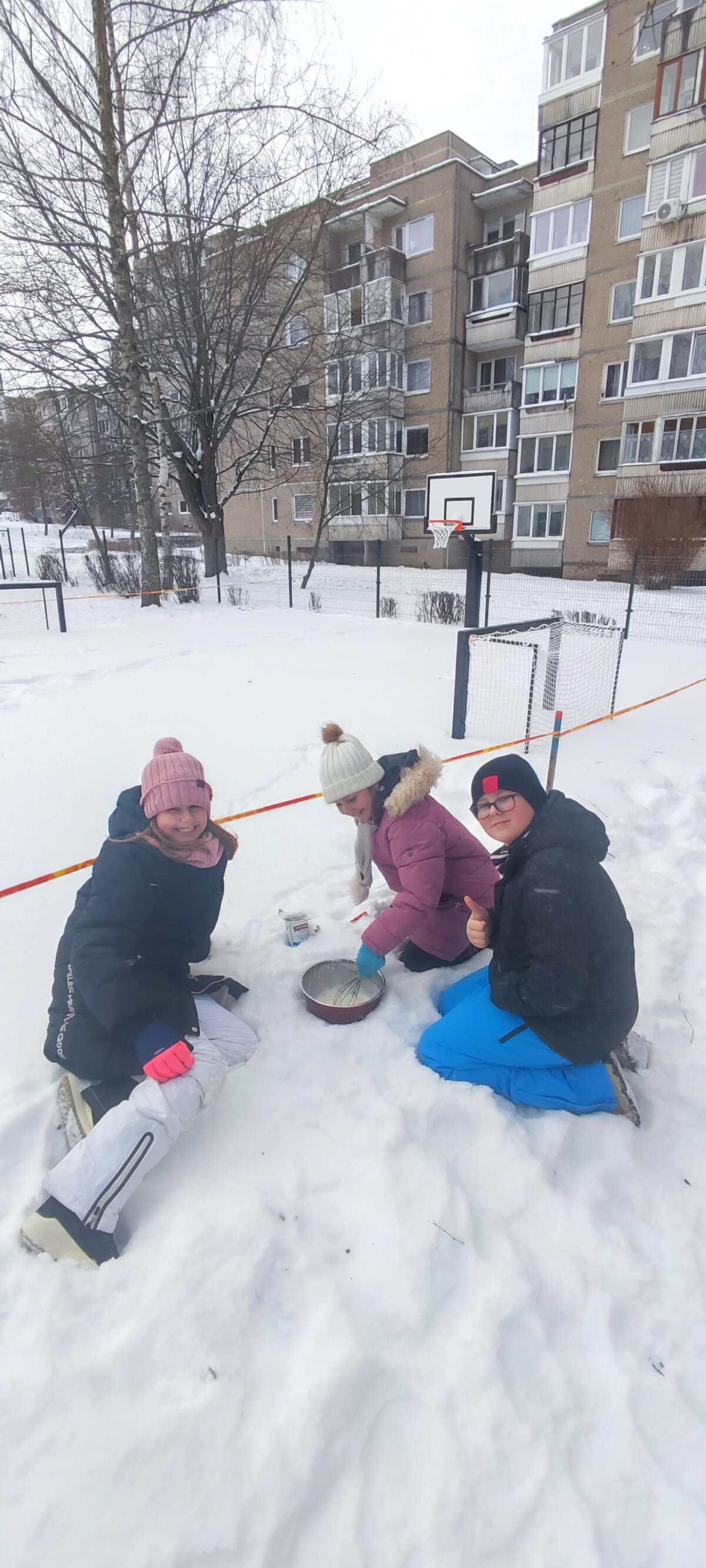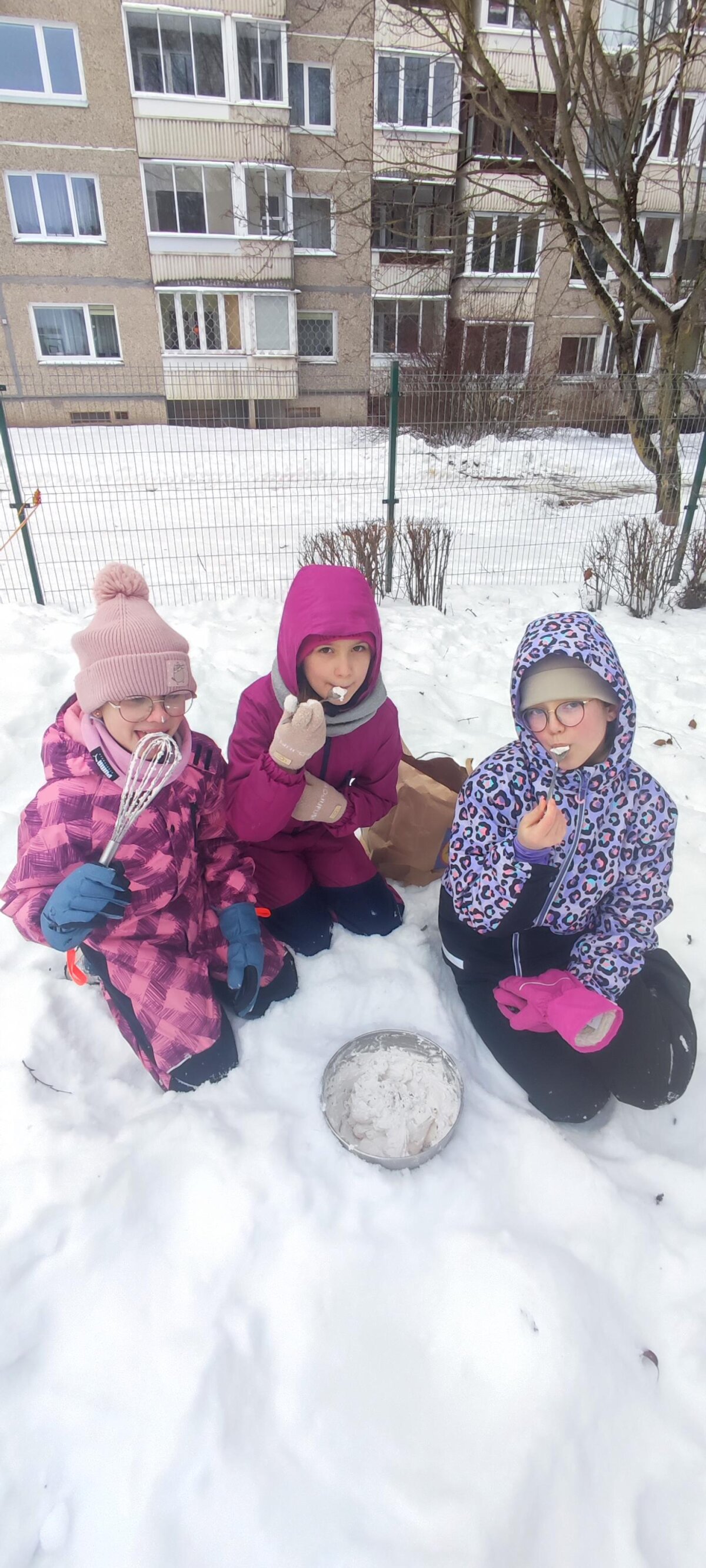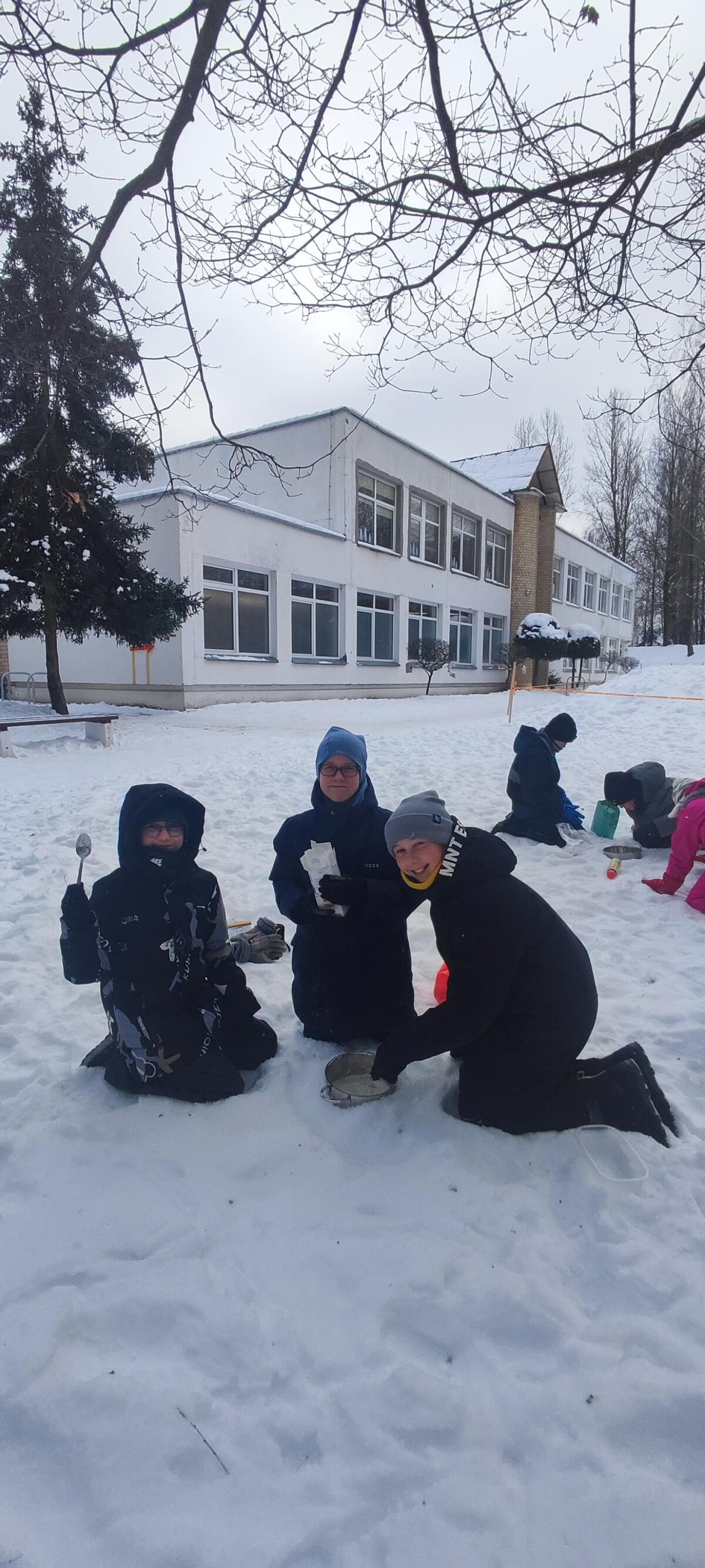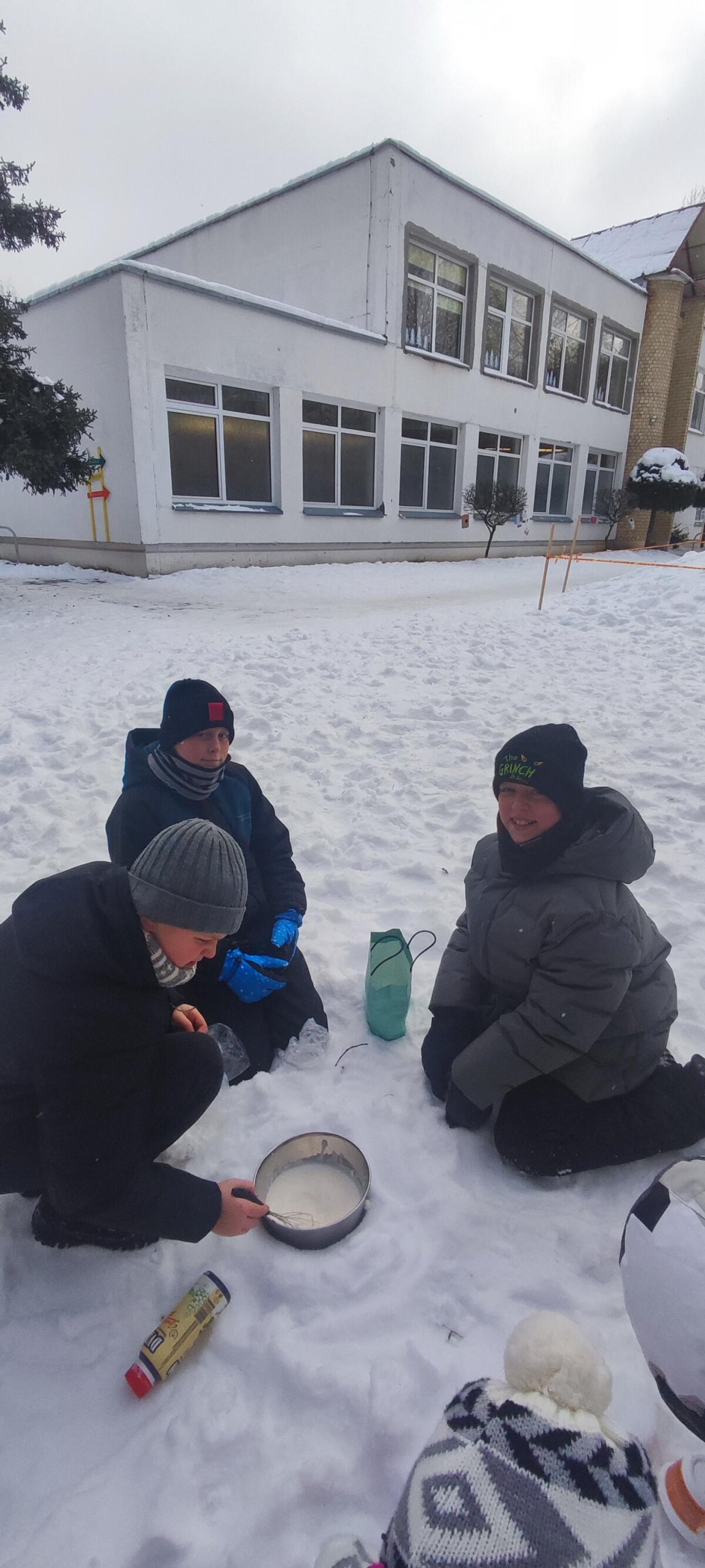 Per technologijų pamoką mokiniai turėjo neįprastą ir labai smagią veiklą – gamino ledus lauke. Pamoka vyko gryname ore, kur vaikai praktiškai išbandė, kaip galima pasigaminti ledus naudojant paprastas priemones ir gamtos sąlygas.