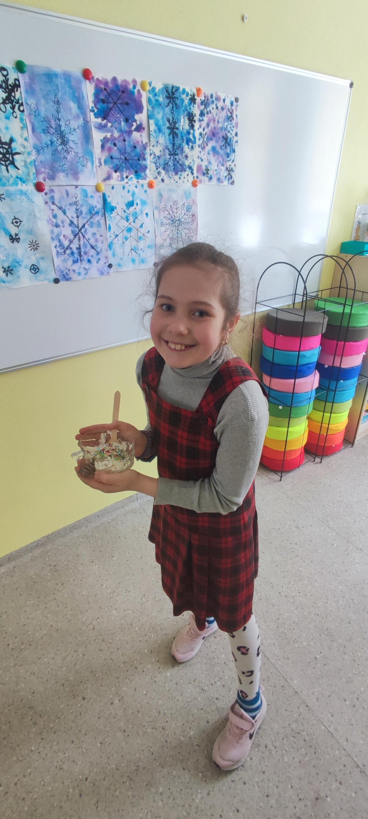 Mokiniai dirbo komandose, naudojo metalinį indą, grietinėlę, cukraus pudrą ir druską. Pamokos metu jie sužinojo, kad druska yra labai svarbi, nes ji padeda greičiau sumažinti temperatūrą aplink metalinį indą. Dėl to mišinys greičiau sušąla ir virsta ledais. Vaikai stebėjo, kaip vyksta šis procesas, ir patys įsitikino druskos poveikiu šalčiui.
