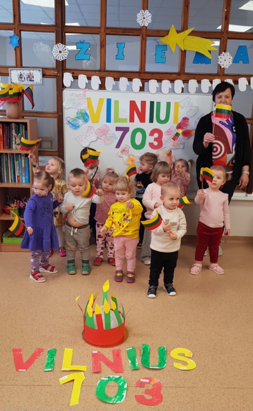 „Naminukų“ grupėje vyko tikra šventė – vaikai kūrė ir „nešė“ daug žvakučių gimtadienio tortui, sveikino Vilnių su 703-uoju gimtadieniu ir su pasididžiavimu kartojo: „Mes – vilniečiai!“