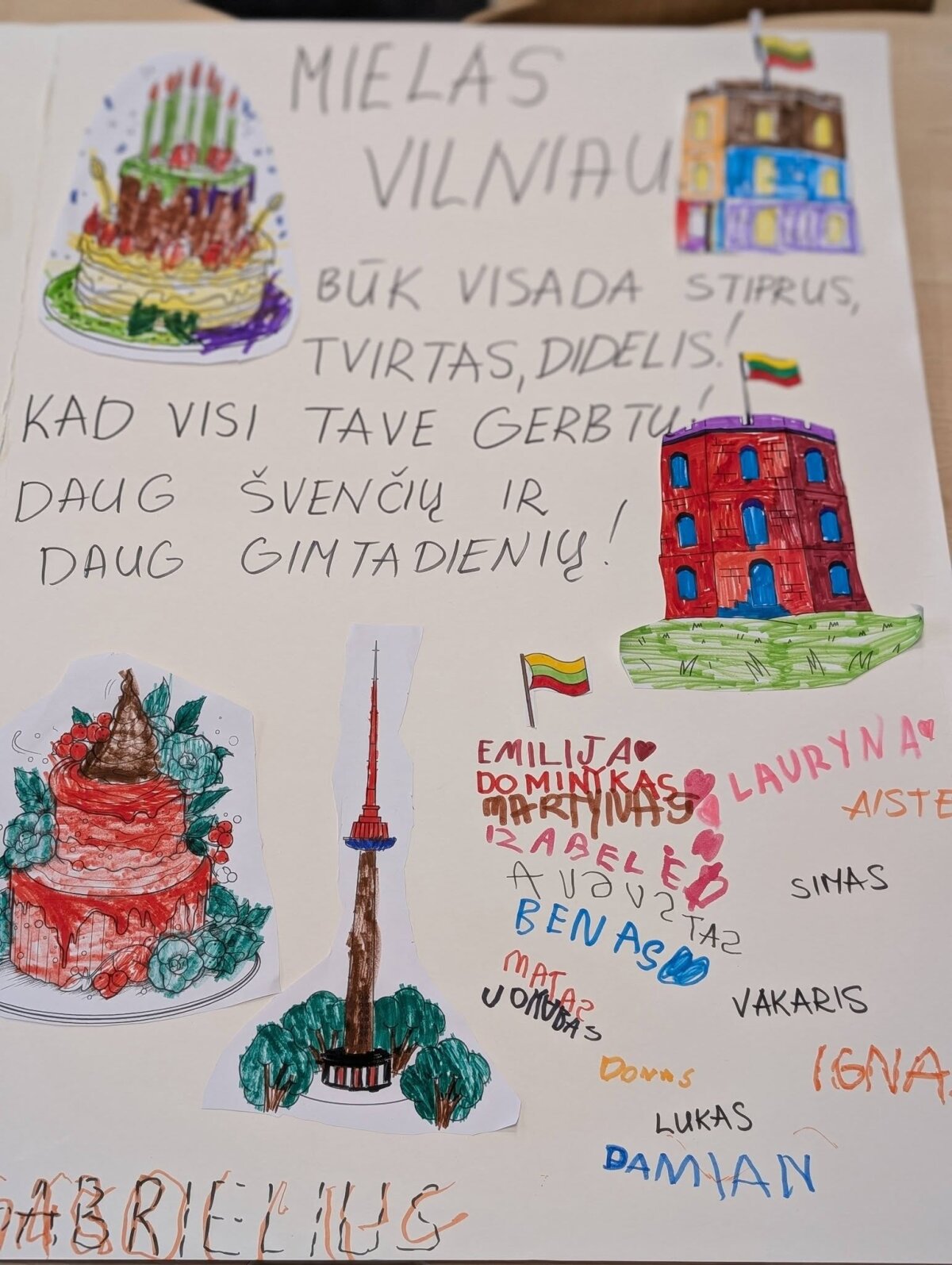 „Gudručių“ grupės vaikai kūrė savo Vilniaus miestą – aplikavo raides, jas iškirpo ir sudėliojo žodžius „Vilnius“ ir „gimtadienis“. Tai buvo ne tik kūrybiška, bet ir prasminga veikla, padėjusi vaikams pažinti raides bei žodžių sandarą.