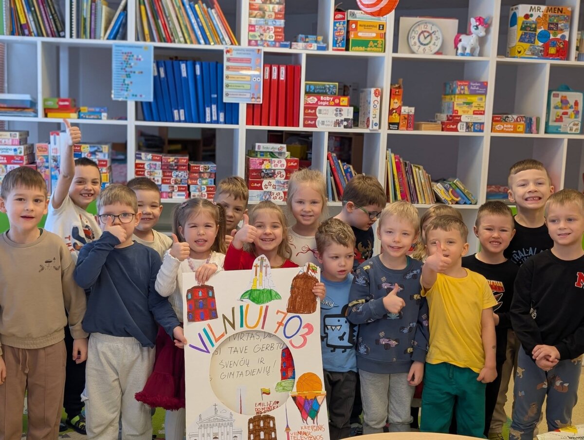 Sausio 23 d. mūsų darželyje tvyrojo ypatinga nuotaika – visi kartu minėjome Vilniaus 703-ąjį gimtadienį. Vaikai su dideliu džiaugsmu ir smalsumu dalyvavo įvairiose kūrybinėse, pažintinėse ir žaidybinėse veiklose, skirtose mūsų mylimam miestui – Vilniui.