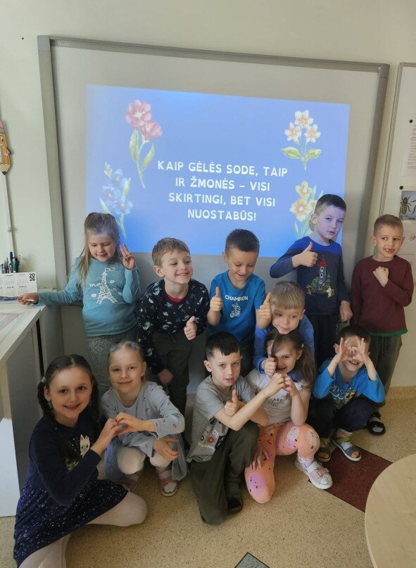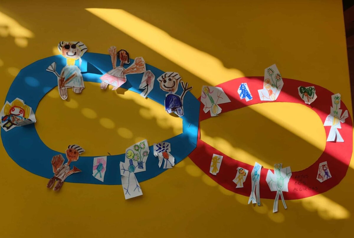 Dienos simboliu tapo begalybės ženklas, kurį vaikai kūrė patys, taip išreikšdami įvairovės ir priėmimo svarbą. Kūrybinių veiklų metu mažieji gamino mėlynos spalvos rėmelius, piešė savo draugus, mokėsi pastebėti ir įvertinti kiekvieno unikalumą.