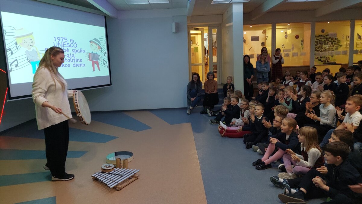 Šiemet ypatinga šventės viešnia buvo muzikos terapeutė, kuri ne tik papasakojo apie muzikos galią mūsų nuotaikai ir sveikatai, bet ir atsivežė visą arsenalą neįprastų muzikos instrumentų! Vaikai, susirinkę salėje, smalsiai apžiūrinėjo ir, svarbiausia, patys galėjo paliesti, išbandyti ir pakalbinti egzotiškus perkusinius, melodinius ir ritmo instrumentus.